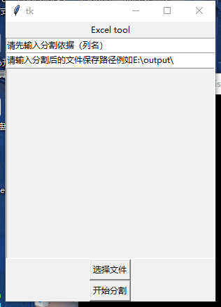 摘要 需求来源于一个会计工作的朋友,说要处理excel表,按照公司名称把相同的公司条目放一个里,将整个大表拆分成多个表,由于数据庞大,手动去拆分很麻烦,就问我能解决么。动手调用pandas库,几行代码就解决了,又考虑到要给别人用,没有python环境,所以决定写出图形界面,打包成exe文件给其他人用。代码并不多,初次使用图形界面,就做一个记录。