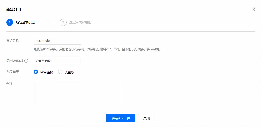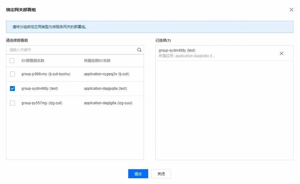 新建微服务网关分组,并将微服务网关分组绑定在创建好的网关应用部署组上。