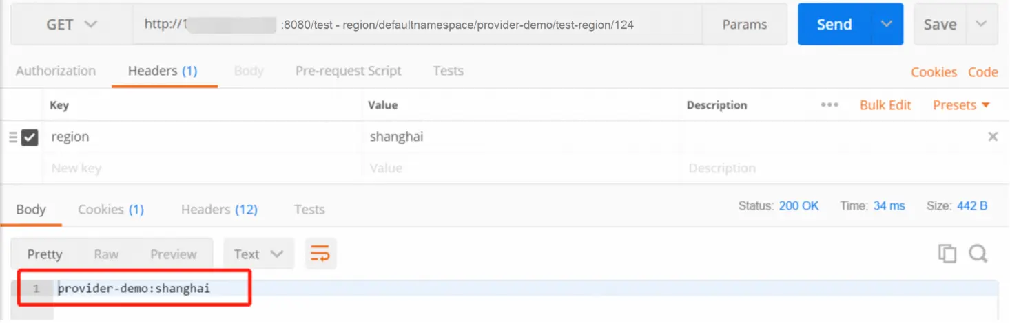 准备两个微服务 consumer -demo;provider - demo。其中provider - demo存在两个版本的包provider-demo-guangzhou.jar,provider-demo-shanghai.jar。两个版本在访问请求携带region参数并访问 /test-region 接口时,会分别返回 shanghai和guangzhou。请求provider - demo时,可以携带两个 Header 参数,region 和usertype。