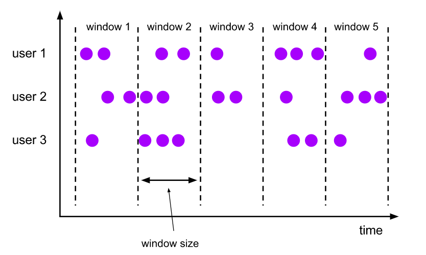 滑动窗口是固定窗口的更广义的一种形式,滑动窗口由固定的窗口长度和滑动间隔组成。