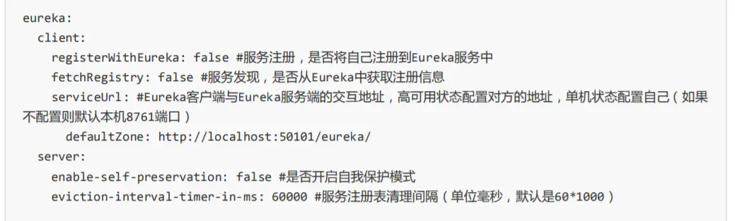 eviction‐interval‐timer‐in‐ms: 60000 #服务注册表清理间隔(单位毫秒,默认是60*1000)