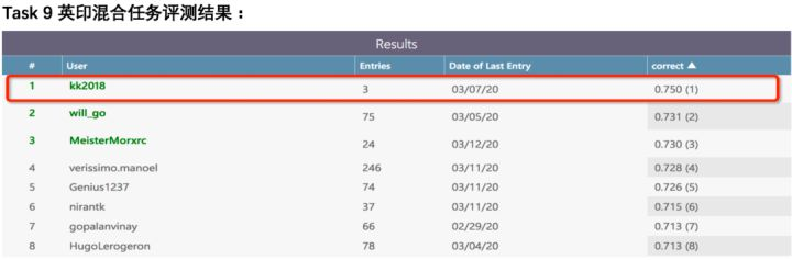 该任务的主办方包括谷歌研究院、美国休斯敦大学以及印度的多所高校等。在比赛中,主办方搜集了源于社交网络的语料片段,测试参赛者对于相关语料片段的情感分析能力。这些语料中都包含一种特殊的语言现象:语码混用——即一段语料中同时混有多种语言。主办方致力于探索时下的 AI 技术对于这一类新问题的解决能力。