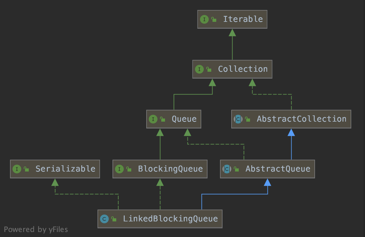 LinkedBlockingQueue也是使用单向链表实现的,并且使用了两个独占锁ReentrantLock,来分离出队入队的锁定操作,同时使用两个条件变量来实现生产者消费者的阻塞唤醒。