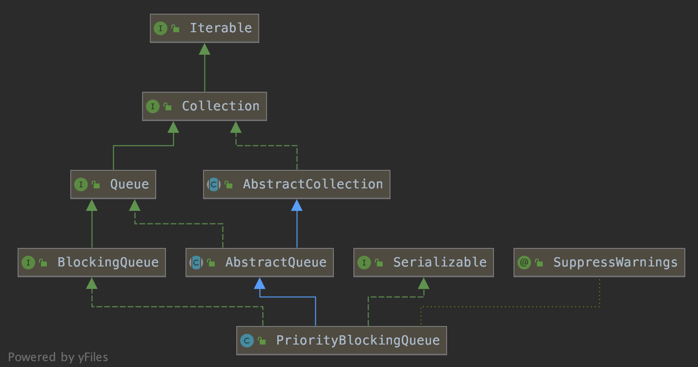PriorityBlockingQueue是带有优先级的无界阻塞队列,每次出队都是优先级最高或者最低的元素出队,它的内部是使用平衡二叉堆来实现的,所以直接遍历的话不保证有序。
