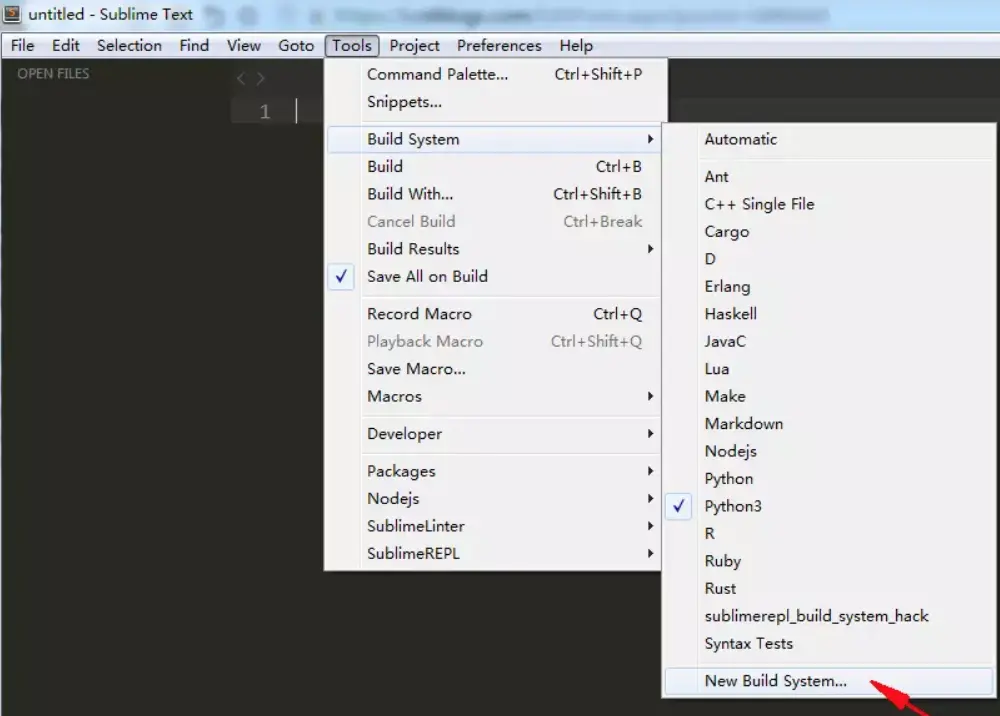 打开sublime,依次点击菜单Tools-->Build System-->New Build System
