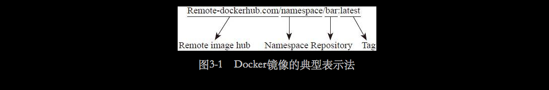 图3-1是典型的Docker镜像的表示方法,可以看到其被“/”分为了三个部分,其中每部分都可以类比Github中的概念。下面按照从左到右的顺序介绍这几个部分以及相关的一些重要概念。