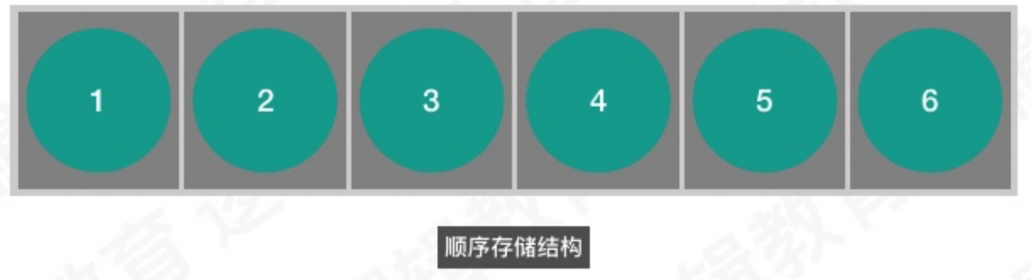 解读: 这样的存储方式,实际非常简单. 可以理解为排队占位. 按照顺序,每个一段空间. 我们所学习且使用的数组就是典型顺序存储结构. 当你在计算机建立一个有6个整型数据的数组时,计算机便在内存中找到一片空地.按照一个整型所占空间大小乘以6.开辟一段连续的内存空间. 然后将数据依顺序放在位置上,依次排放.