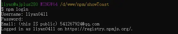 - 在终端执行登录命令:npm login