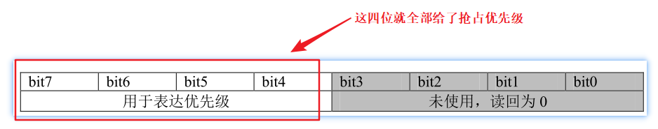 这里我们用阶级来表示抢占优先级,用阶层来表示子优先级,通常我们响应优先级也叫做子优先级。