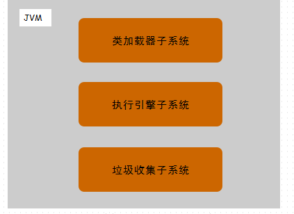 jvm有三个子系统: 类加载器子系统;执行引擎子系统;垃圾收集子系统