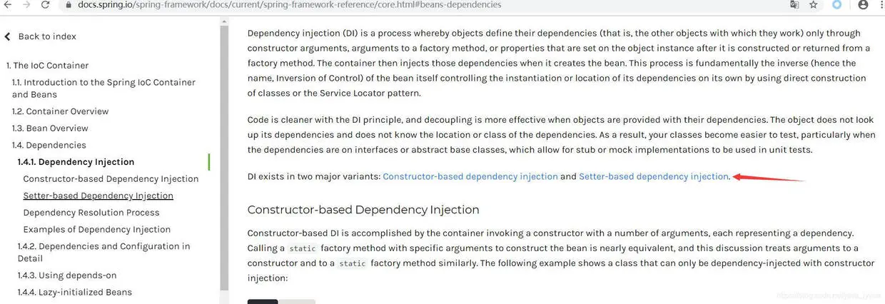 但是实际开发中手动装配的场景比较少(比如在缺少源码的情况下可能会使用这种手动装配情况); 关于依赖注入的资料可以参考官网 docs.spring.io/spring-fram… 这一章节提到了一个非常重要的知识点,也是一个常见的spring面试题目。spring有几种依赖注入方式?那么这个问题应该怎么回答呢?