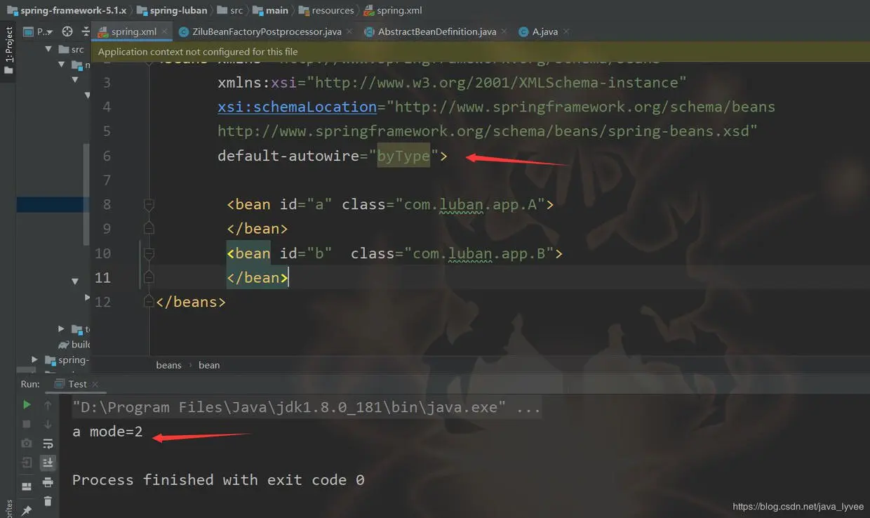 xml配置了A 和B 都是自动装配模型为bytype讲道理要实现autowireMode=2