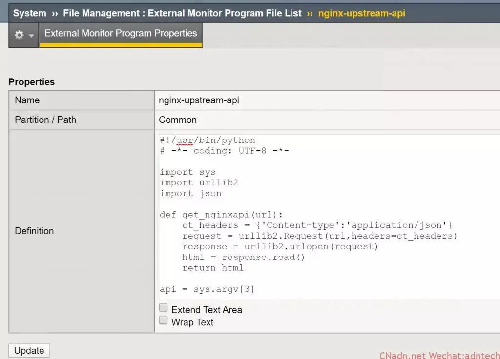4.将该脚本上传至LTM,上传路径:system–file management–external monitor–import, 效果如下