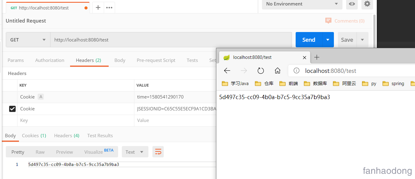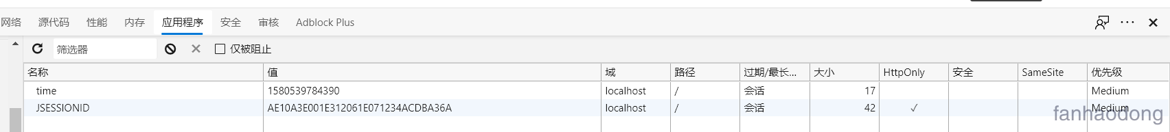 这个就是我们存入的cookie . 所以 session其实就是cookie的表示 . 作为用户的key , 他的生命周期只有一次会话. 也就是我们关闭浏览器, 这个cookie就会被删除. 这个是Session的默认实现 . 他不允许在浏览器保存 .