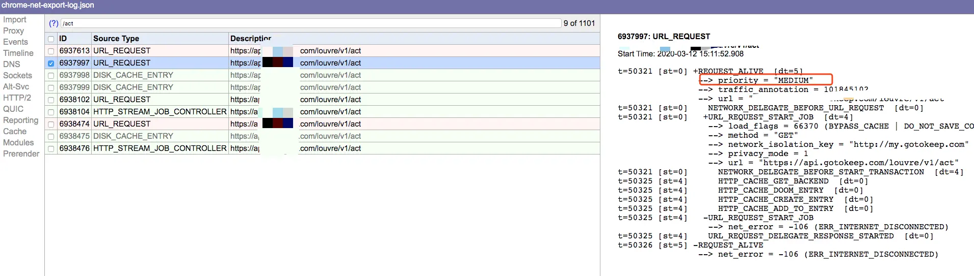 Event,然后按需搜索就好了。在这里我看到了我心仪已久的priority,发现似乎请求集美们都是medium,没有人比对应的请求更优秀。( 走偏 -