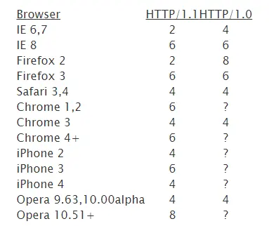 不同浏览器对并发限制也不尽相同: