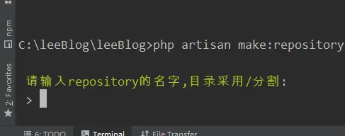$name = $this->ask('请输入repository的名字,目录采用/分割');