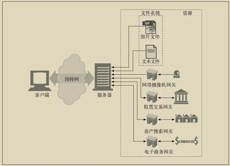 最简单的 Web 资源就是 Web 服务器文件系统中的静态文件,包括文本文件、HTML 文件JPEG 图片文件、AVI 电影文件,或所有其他你能够想到的格式