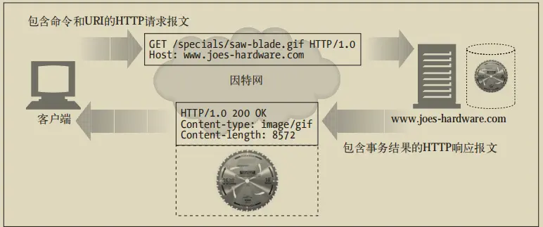 浏览器会执行一个 事务来获取描述页面布局的 HTML“框架”,然后发布另外的 HTTP 事务来获取每 个嵌入式图片、图像面板、Java 小程序等。