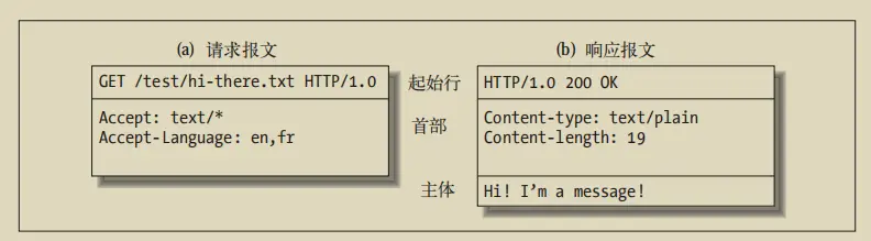 从 Web 客户端发往 Web 服务器的 HTTP 报文称为请求报文(request message);从 服务器发往客户端的报文称为响应报文(response message)。HTTP 请求和响应报文的格式很类似。