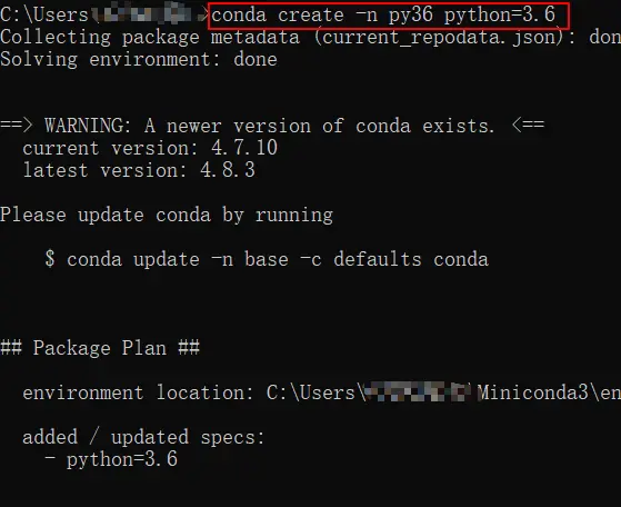 Anaconda后在终端中使用conda create -n env_name(env_name表示指定虚拟环境的名称) -