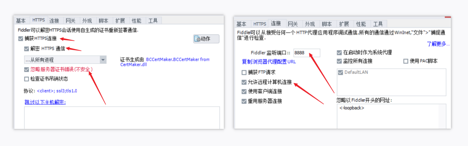 找接口第一件事肯定是抓包的嘞,现在我们去用Fiddler抓包,Fiddle抓手机的包需要稍微配置一下