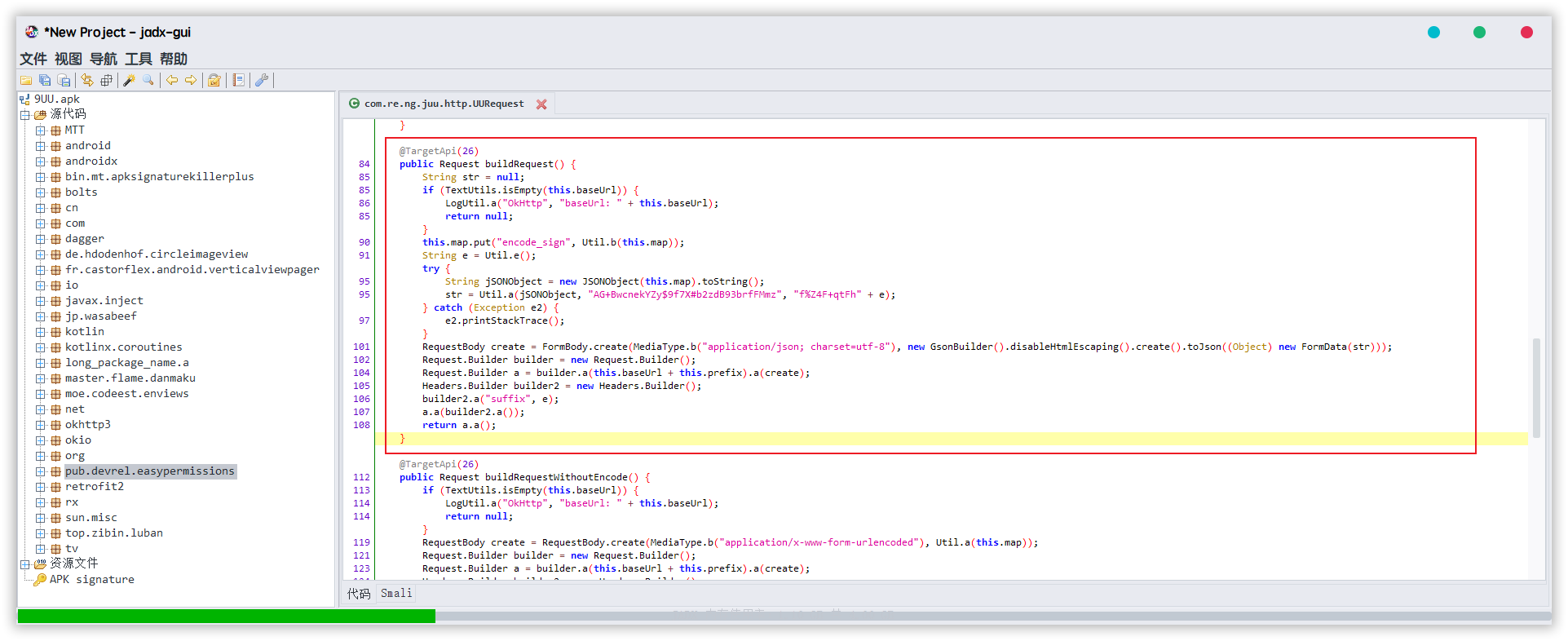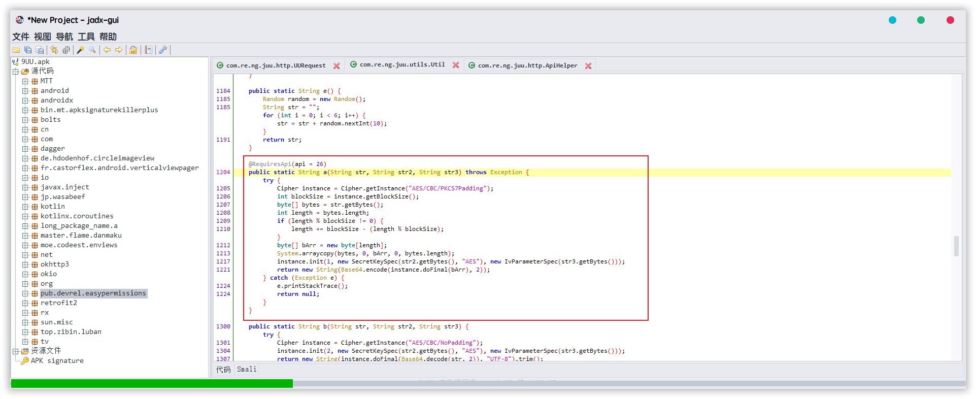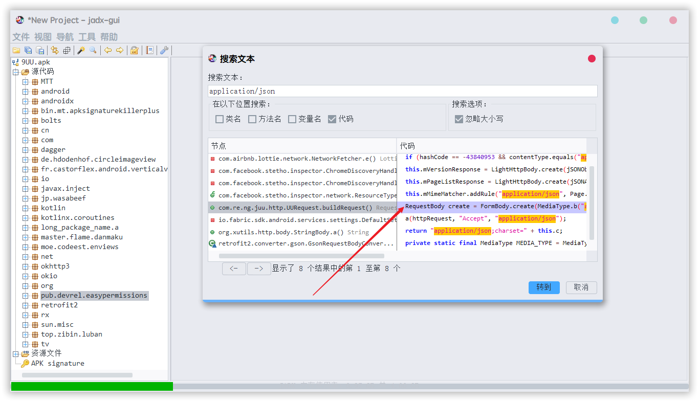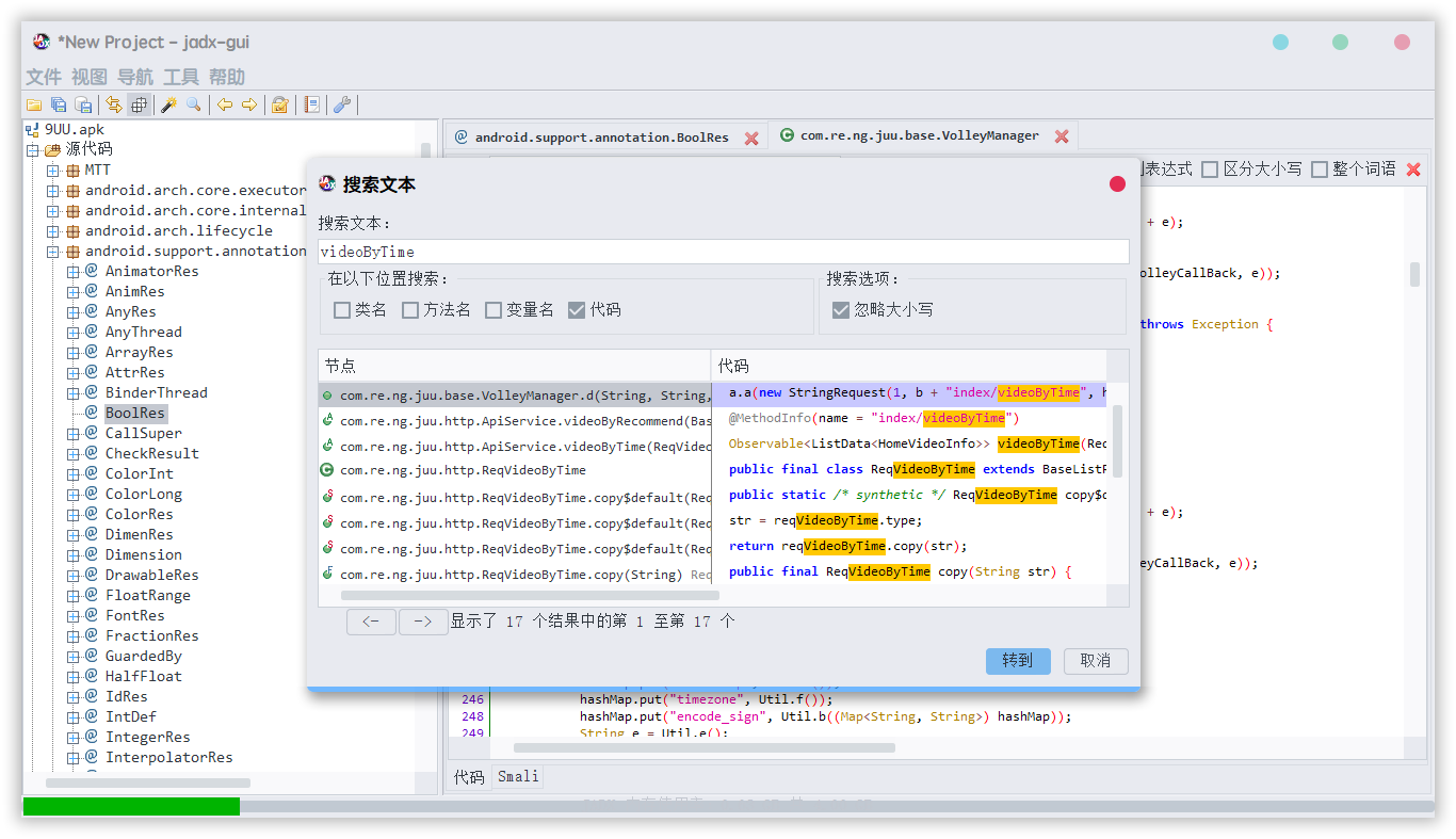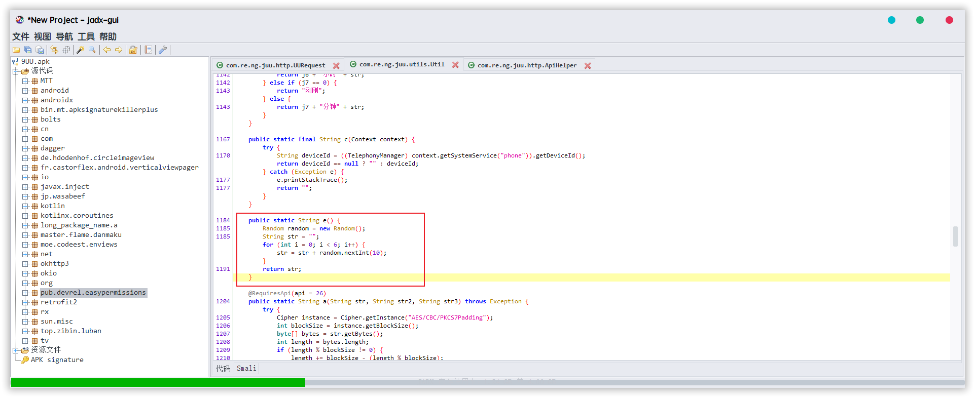 (本来是打算用dex2jar和jd-gui的,发现jadx反编译的代码更直观,就换成了这个,jadx使用教程我这里就不赘述了)