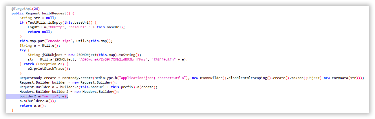 既然他是随机的,我们给定他一个值固定值,由于加密密钥和请求参数的随机值是一样的,所以我们在发送请求的时候和加密密钥时候使用同一个suffix的值就可以了