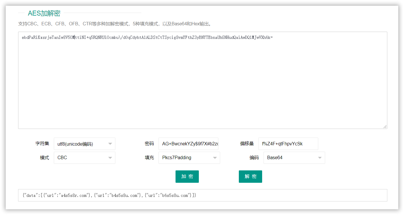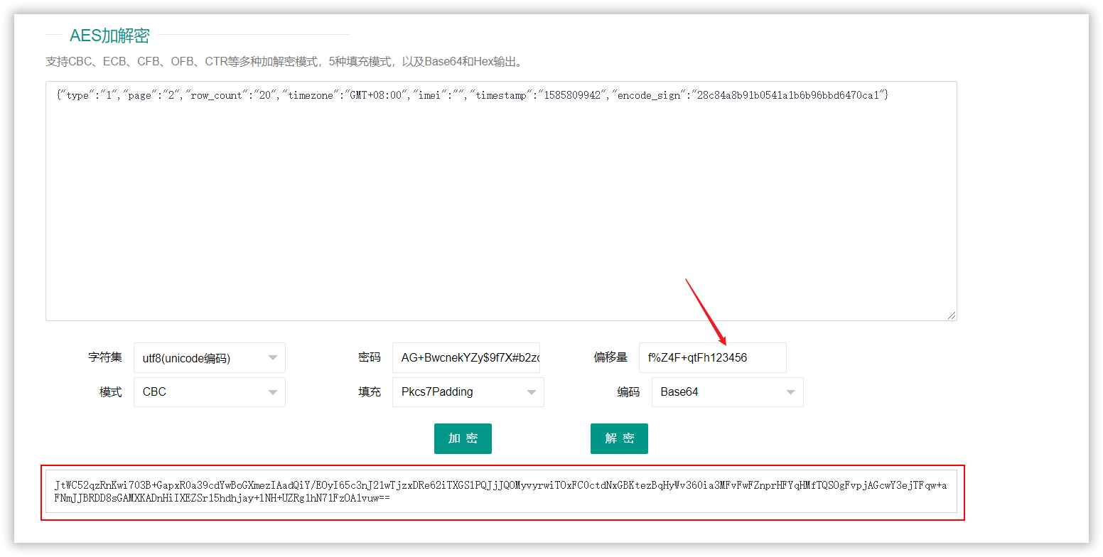 //第一个传入的是需要需加密字符串 第二个传入的是加密密钥 第三个传入的是偏移量