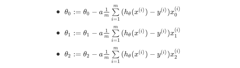 比如线性回归的多变量假设函数、代价函数、梯度下降法分别如下: