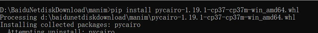 pycairo需要手动安装(找到合适的版本,比如我的是pyhton3.7 即37 win64版本)