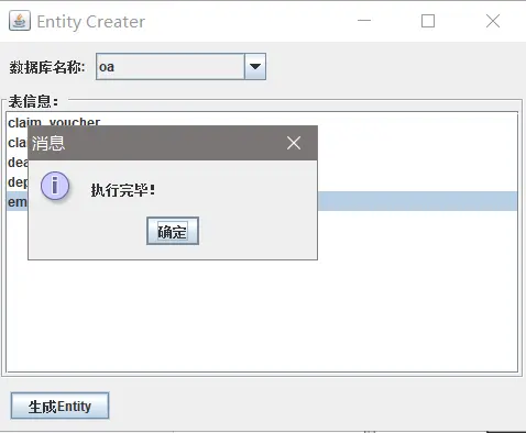 JOptionPane.showMessageDialog(null,"执行完毕!");