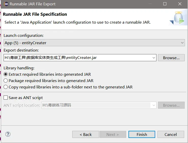 - 1、项目右键-> Export -> Runnable JAR file ->选择位置finash