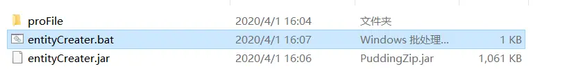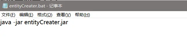 - 4、如果是压缩文件,则新建文本->后缀名改为.bat(批处理文件),内容写入java -jar entityCreater.jar,记得按个回车
