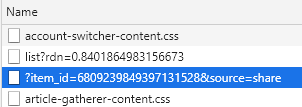果然是我们想要的。我们倒回去观察,发现XHR请求中只有一个未知参数item_id,而这个参数在重定向的网址中有出现过:
