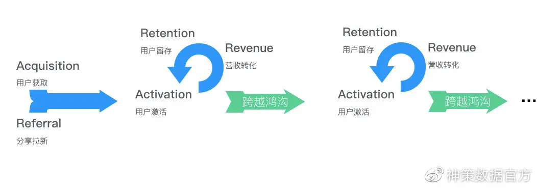 随着行业的变化,AARRR 模型不再是一个简单的线性漏斗,而是一个基于产品价值不断扩展的增长迭代,不断帮用户体验新的产品价值,只有跨越鸿沟,才能在新时代的中国互联网环境中,真正用好 AARRR 模型,实现企业盈利。