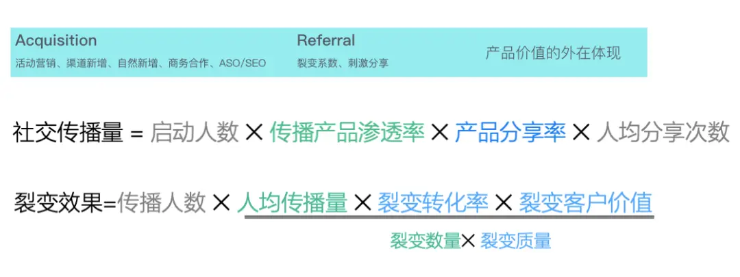 传播裂变效果公式如上图所示,只有提高中间的转化率才能真正达到裂变,获取新用户。