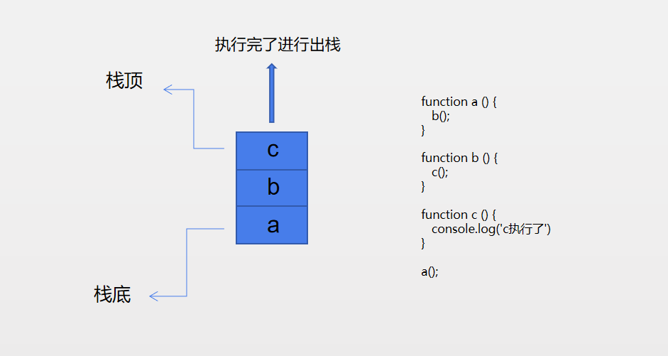 栈就是在一段数据的一端进行操作,因此栈的操作会非常快,并且也比较容易去实现。在 JS 中的执行栈就是栈结构的,每次执行一条语句或方法,都会将其压入栈中,如果方法中嵌套了方法,就先压入外层方法,再压入内层方法,因此出栈的时候会是内层方法先执行先出栈,然后才到外部方法执行出栈。