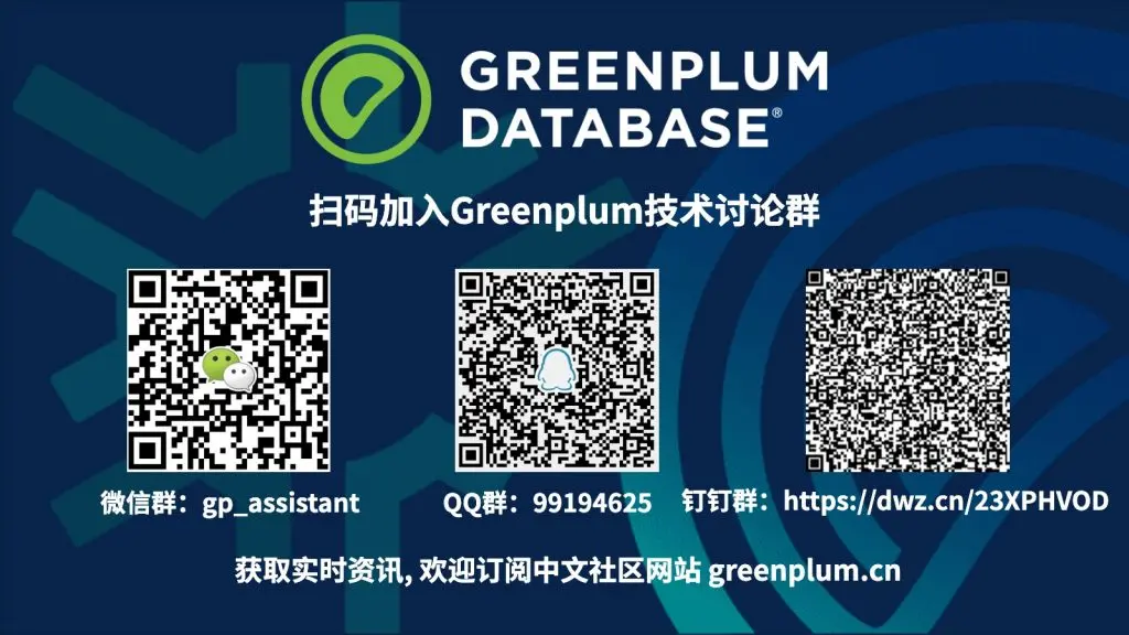 获得更多关于Greenpum的技术干货,请访问Greenplum中文社区网站。