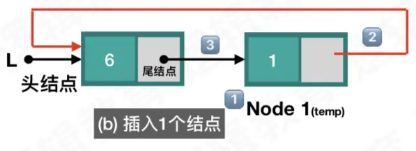 尾结点。 临时变量temp记录*L。*L指向*L的next。尾结点next指向*L。- 释放