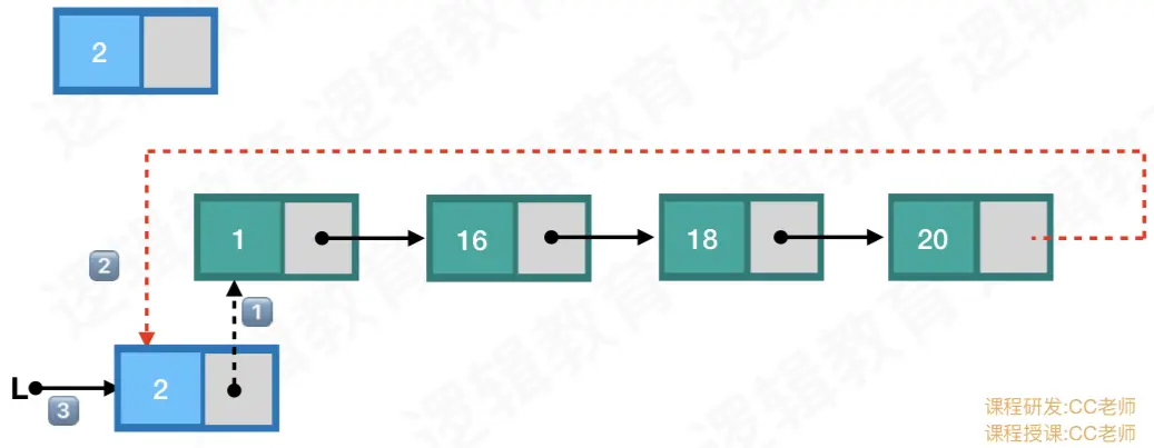 目标结点,将tail指针的next指向目标结点,目标结点的next指针指向首结点*L。因为有tail指针的存在,我们不需要遍历链表来寻找最后一个结点