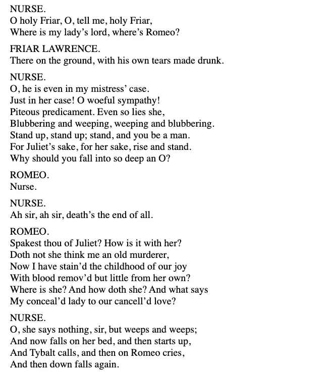 数据来源于 The Complete Works of William Shakespeare,大概形式长这个样子,就是角色有自己的台词,然后不断的进行角色切换