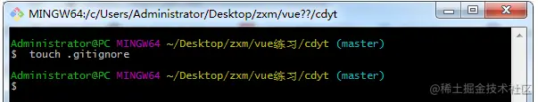 首先,在项目目录下打开git Bash Here,输入命令:touch .gitignore