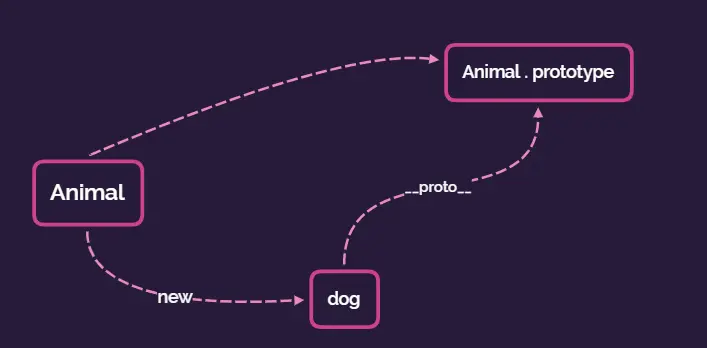 事实上,实例dog的隐式原型(__proto__)指向它构造函数的显式原型(prototype),指向的意思是等价于,即