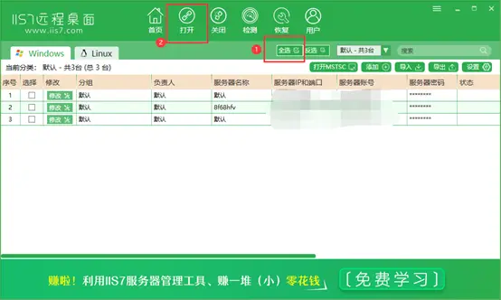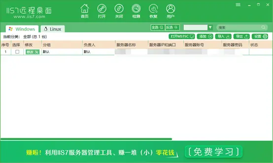 iis7 远程桌面连接工具,又叫做iis7 远程桌面管理软件,是一款绿色小巧,功能实用的远程桌面管理工具,其界面简洁,操作便捷,能够同时远程操作多台服务器,并且多台服务器间可以自由切换,适用于网站管理人员使用。