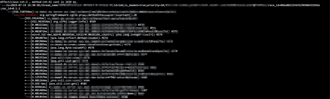 有段时间,总是碰到几次偶尔的超时,但是看日志都正常,鹰眼的调用链路都完全 ok,没有哪一步数据库操作或者 HSF 调用是特别慢的。 各种监控统计的时间维度的耗时,都十分正常,无法找到那个 rt 的尖刺。 想到了可能是日志的问题,但是没有证据支撑。trace 命令能监控每一步的耗时,并且可以配合条件表达式,当耗时超过 xx ms 时打印详细日志。找台机器,输入命令,后面的就是静等了。再次出现 rt 尖刺时,能够捕捉到耗时的分布情况。