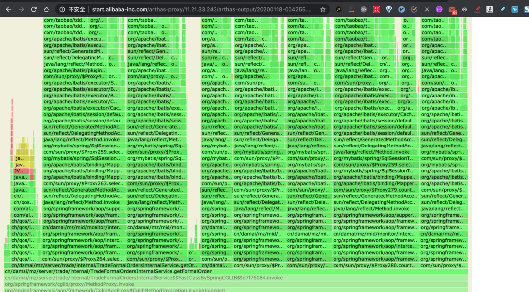 排查性能问题的时候,还有一个神器:火焰图通过火焰图,很清晰的看到一段时间内,对每个方法耗时的统计。
