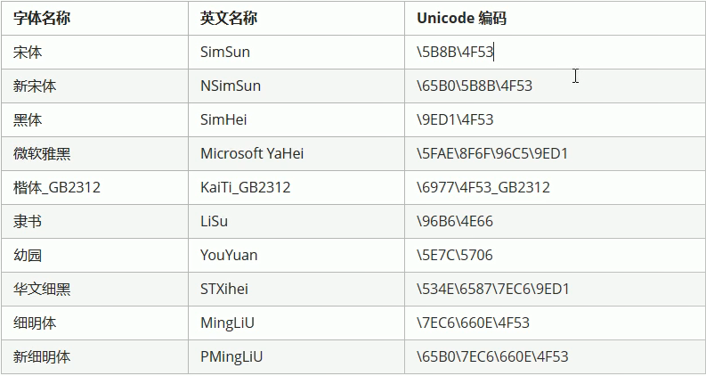font-family: "宋体";