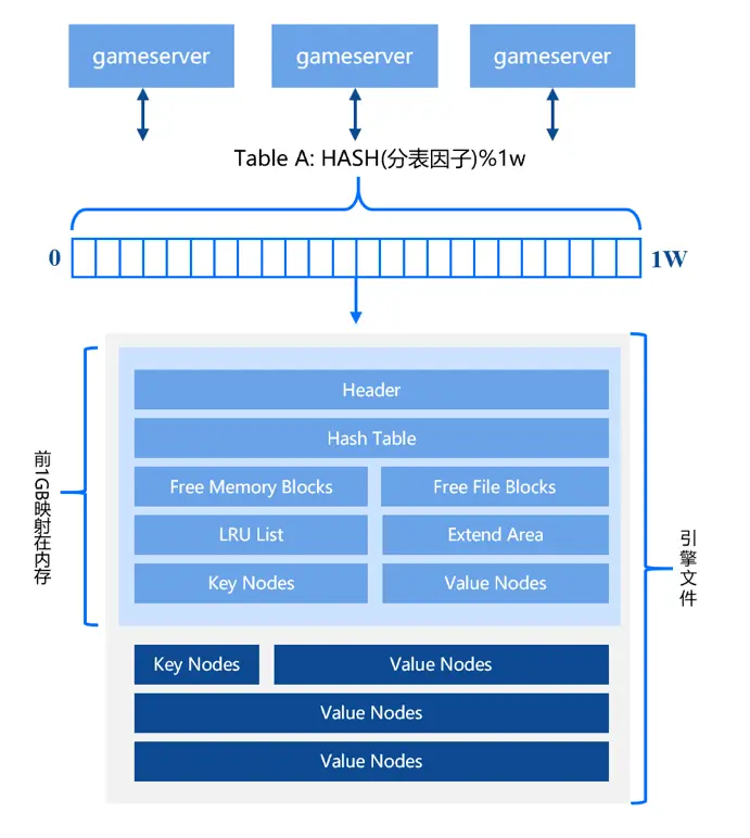 腾讯自研数据库TcaplusDB,专为游戏而生。作为NoSQL数据库产品,TcaplusDB具备高性能/低成本、高可用性、无损伸缩能力,提供表的抽象描述,同时使用ProtoBuf作为表描述语言。但其核心存储本质上是一个具备持久化能力的内存key value系统,在内存中进行KV式数据存储,通过内存池共享、冷热数据分离等技术保证海量数据的微秒级返回。