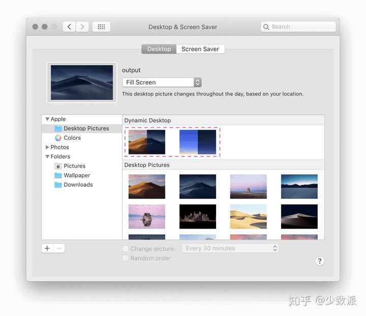 macOS 10.14 开始加入了一项可以根据时间变化动态调整桌面的新特性:动态桌面。它可以让我们的桌面壁纸跟随一天从早到晚的时间变化呈现不同的视觉效果。配合明、暗色模式自动切换,macOS 的系统主题和壁纸都可以根据地理位置和时间做到动态变化。